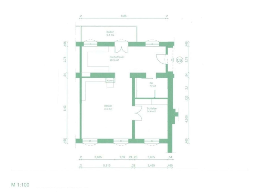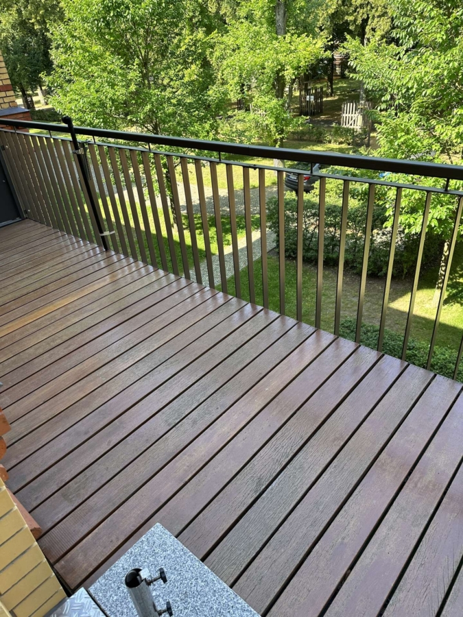 Ebenfalls verfügt die Wohnung über einen praktischen Einbauschrank im Schlafzimmer und über einen großen Balkon. Das Badezimmer mit modernen Badobjekten verfügt über eine Badewanne.
