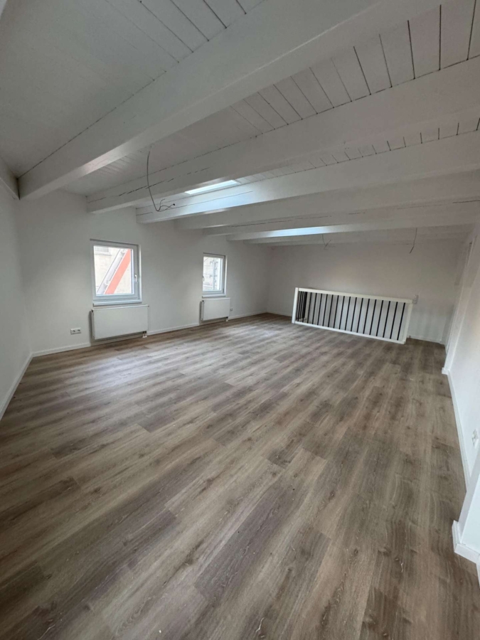 Über eine moderne Treppe erreichen Sie den offenen Schlaf- und Wohnbereich, welcher nicht nur durch die Holzbalken an der Decke, sondern auch durch den neuen hochwertigen Vinylboden einzigartig ist.