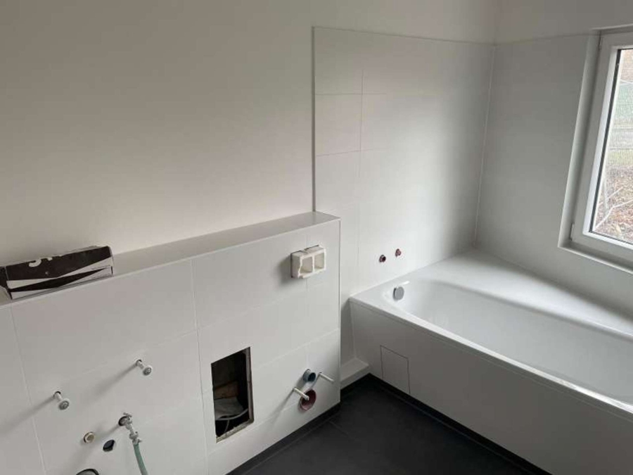 Die unteren Etage ist mit einer Fußbodenheizung ausgestattet und die offene Wohnküche ist komplett gefliest. Das großzügige und helle Badezimmer verfügt über große Badewanne.
